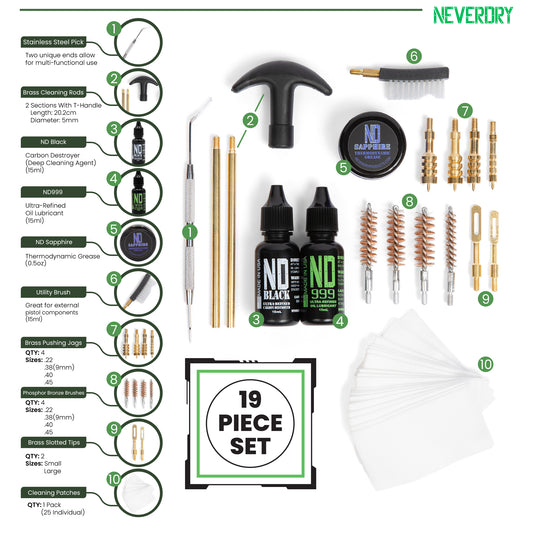 Your all-in-one solution for pristine firearm maintenance and care. This comprehensive kit combines the power of our three flagship products as well as a variety of tools to cover each and every pistol component.